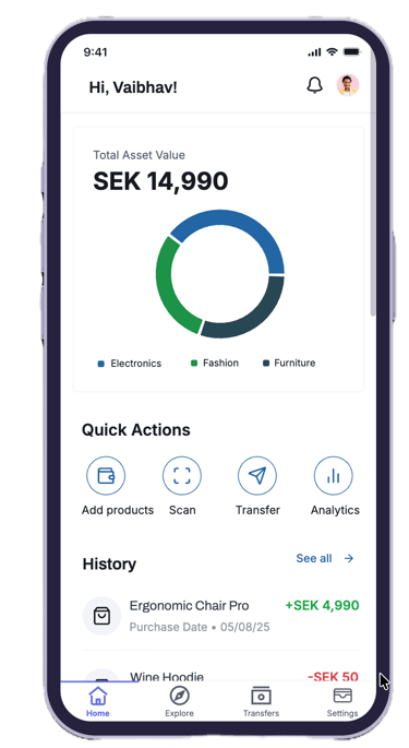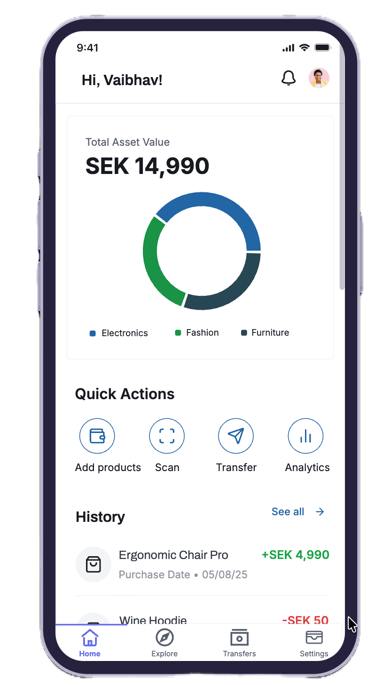 Follow every item as it moves through its real-world journey. As products change hands, are serviced, reused, or resold, Aveown reveals their lifecycle in real time.
